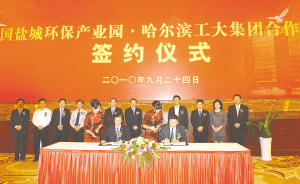 为加快打造国家级环保城镇示范基地,近日,中国盐城环保产业园与哈尔滨工大集团携手,就共同打造盐城环保产业园环保小镇达成合作协议。市委书记赵鹏,哈尔滨工大集团董事会主席、总裁张大成出席签约仪式并致辞。中国红十字会副理事长江丹,国家出入境检验检疫局总检验师项玉章等应邀出席。