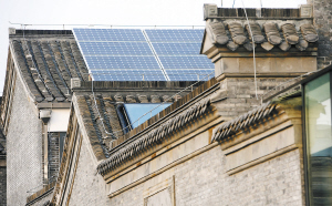 扬州老城区低碳社区屋顶上架起太阳能电池板