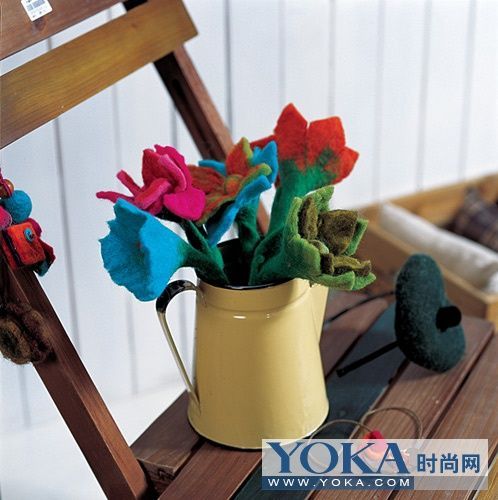 鲜花容易凋谢,外面卖的假花又没有情趣。不妨自己动手,利用家里废弃的布头、毡子等,自己制作花朵造型的装饰。你不必追求造型多么逼真,越是歪歪扭扭、充满童趣,效果越好。拿给孩子当玩具,也很安全。至于特别小块的边角料,你可以发挥想象,制作一些头饰、项链装饰等。