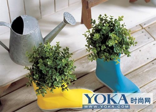 购买的鲜花,一般都使用塑料花盆,外形难看,很多人还要单独再购买套盆用来装饰。家里的雨鞋,不经常穿,现在可以派上用场了,把花盆直接放在靴筒里,非常可爱。