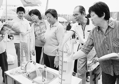 在5月27日的启动仪式上,工作人员现场展示安装水龙头节水阀后的节水效果,引起居民们的浓厚兴趣(上图)。据工作人员介绍,安装这种节水阀的水龙头,可比普通水龙头节水50%,一年收回成本,使用寿命长达10年。(刘志海) ( 责任编辑:管理员 ) |