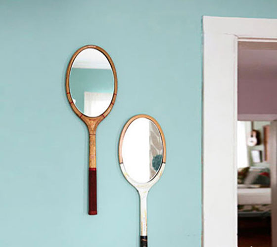 “旧球拍装饰镜” 墙上的装饰,美观与实用两者兼备唯有镜子了。用球拍做框,稳固大方,让一面普通的镜子有了说不尽的故事。