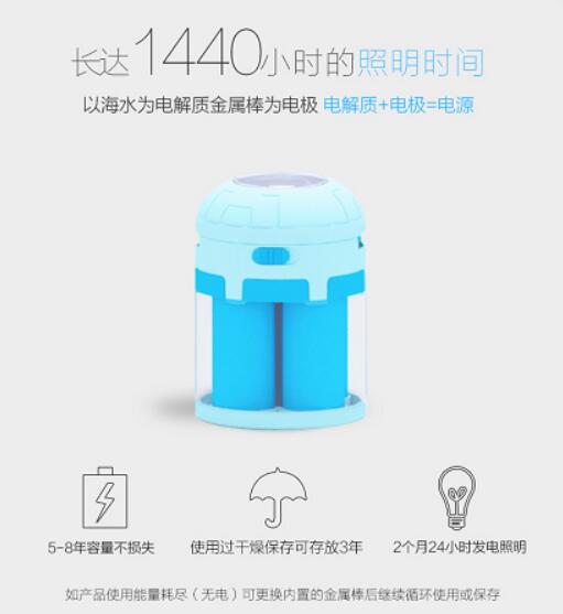 除此之外,海水能源灯以海水中的电解质加产品的金属棒做电极产生电源,从而无需充电,在无污染的基础上,节省了电能,在时下资源短缺的情况下,海水能源灯这一新产品的出现,采用海水这一新能源,为世界节约每一份资源,积土成山,积水成渊,这看似小小的贡献,却为世界增添了绚丽色彩。对海水的进一步利用,更是代表着人们对于在环保科技上迈出了新的一步。