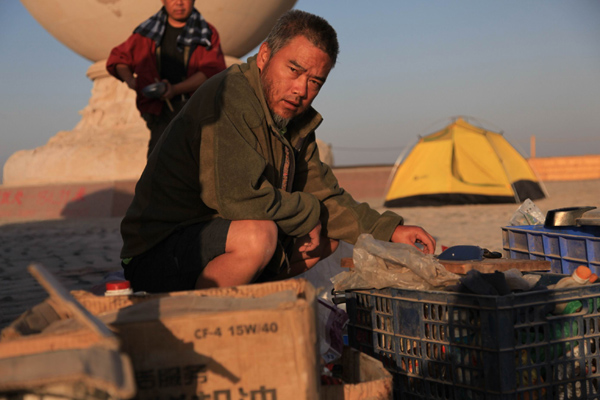 杨勇在艾丁湖底宿营地。