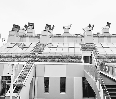 屋顶和地下还有玄机。屋顶是太阳能,提供大楼的电能。地下有沼气池,楼内的有机垃圾全部收集于此,以产生燃气,供居民使用。可以说,这幢楼的电能、水源全部实现了自我循环。
